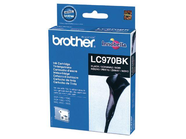 Brother LC970BK. Sort blæk type: Pigmentbaseret blæk, Forsyningstype: Enkelt pakke, Udskrivning af farver: Sort, Antal pr. pakke: 1 stk, Sort blæk sidekapacitet: 350 Sider