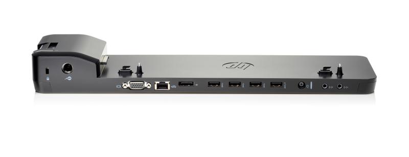 Hurtig og nem udvidelse af skærmen, netværket og enhedsforbindelserne, så du tilpasser en altid parat arbejdsplads med den HP's ultraslanke 2013-dockingstation, som er et enkelt sidedæksel, der skydes ind med et klik, og som er beregnet til udvalgte, ultraslanke HP EliteBook-notebook-pc'er.