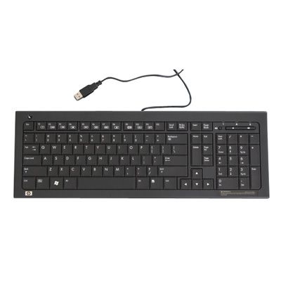 HP 537924-L31. Tastatur formfaktor: Fuld størrelse (100 %). Tastatur stil: Lige. Forbindelsesteknologi: Ledningsført, Enhedsgrænseflade: USB, Tastaturopsætning: QWERTY. Produktfarve: Sort
