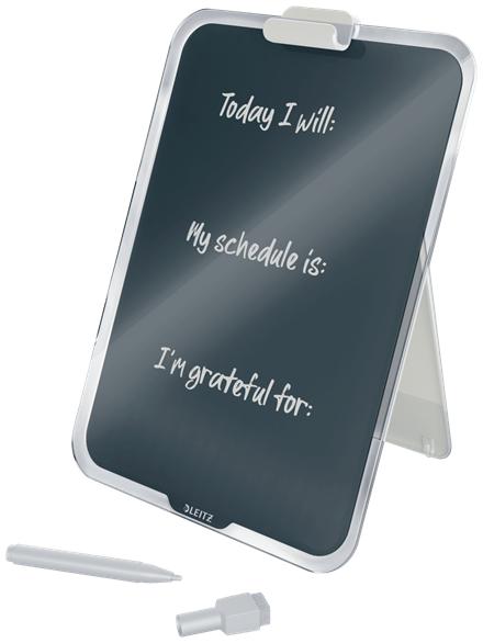 Føl dig hjemme med Cosy serien fra Leitz uanset hvor din arbejdsdag tager dig hen. Med det minimalistiske design og de indbydende matte farver giver du stil og farve til dit arbejdsområde. Cosy glas skrivebords flipover til notestagning kan bruges igen og igen. Skriv med en marker til whiteboards, tør væk og start på ny. Denne premium kvalitets glas skrivebords flipover er et perfekt tillæg til hjemmet eller kontoret for at sikre, at du forbliver afslappet og organiseret hele dagen.
