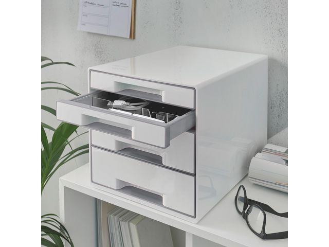LEITZ Desk Cube WOW 4-skuffer hvid/grå