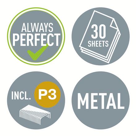Kraftig metalhæftemaskine til hverdagsbrug. Robust og pålidelig. Patenteret Direct Impact Technology sikrer perfekt hæftning hver gang.