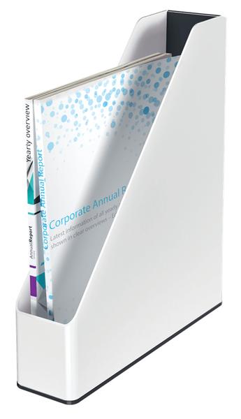 Iøjnefaldende, premium kvalitets Leitz tidsskriftsamler i slående, stilfulde dobbelt farver med skinnende finish. Denne robuste tidsskriftsamler passer perfekt til andre produkter i Leitz WOW serien. Moderne og tidssvarende design, der ser godt ud i hjemmet og på kontoret.