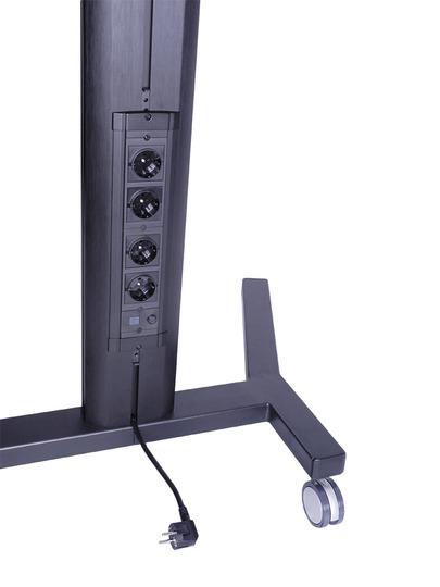 As with the standard Public Display stand the M Public Display Stand 180 Flight Case Single has a built in 220V power rail, making on the fly installations looking really nice with little or no excessive cables around the floor stand. The pillar has built in cable management, making any audio or data cables disappear into the pillar itself.