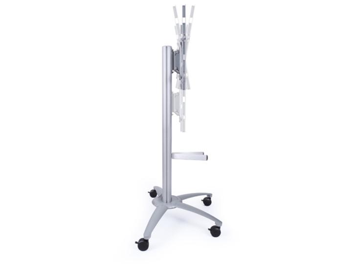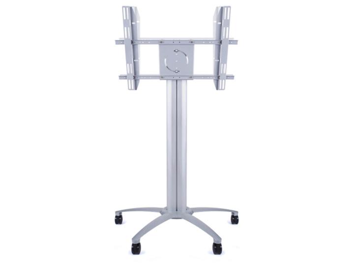 The M Multibrackets Public Display Stand can be used with screens in a standard landscape mode or a portrait mode. It can be used with or without wheels, and with or without shelves, camera holder and power outlet.
