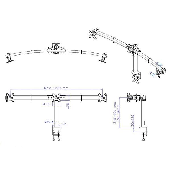 VALUE Triple Arm, Desk Clamp, Sort